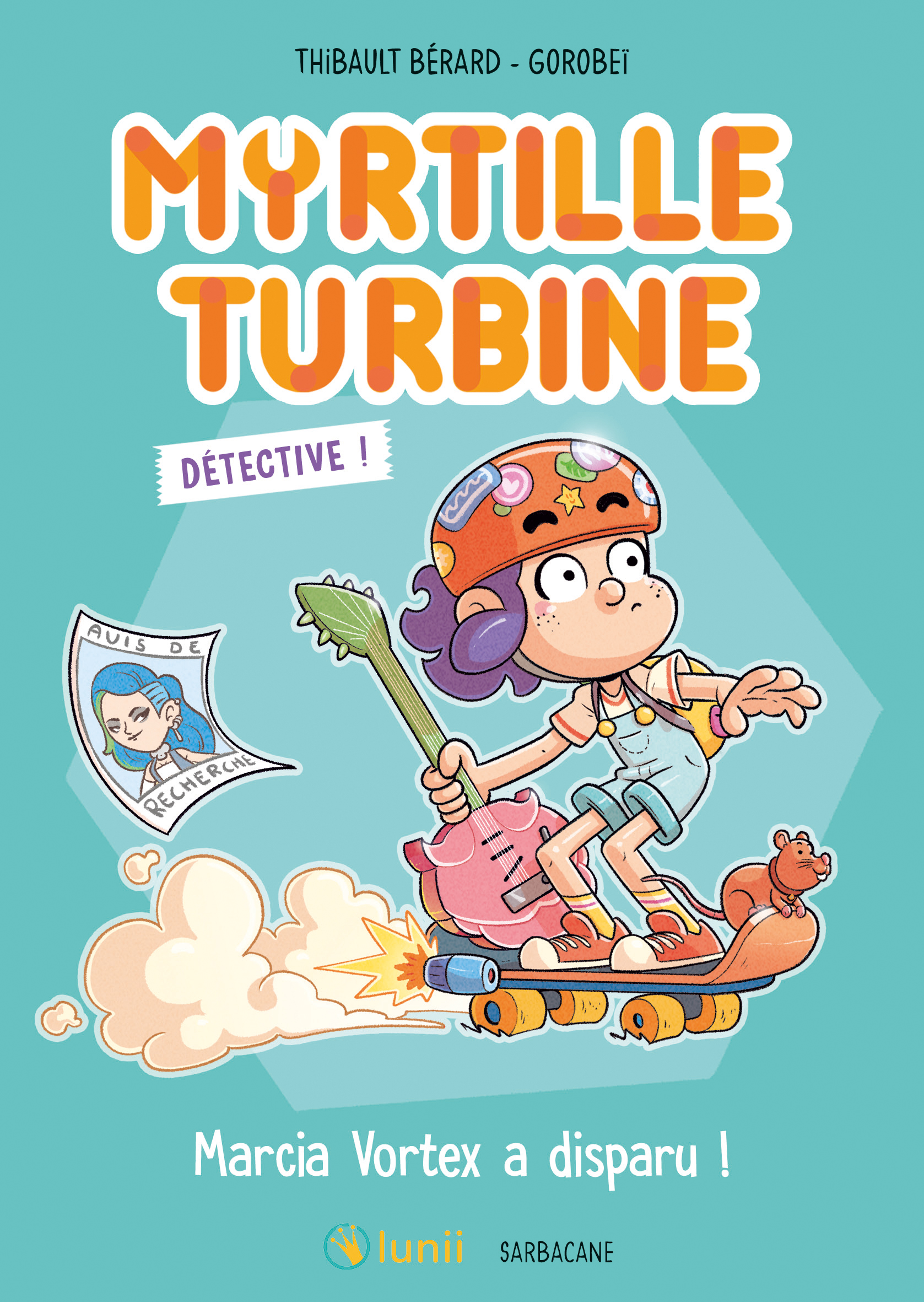 Laissez-nous vous présenter maintenant notre nouvelle héroïne. Vous la connaissez peut-être grâce à Lunii : elle s’appelle Myrtille Turbine et, avec elle, ça déménage. Elle est bricoleuse, débrouillarde et a des cheveux couleur… myrtille. Aidée de son rat de compagnie, Tempête, elle aime fourrer son nez partout. Grâce aux déchets qu’elle récupère, Myrtille crée toutes sortes d’inventions comme un turbo-skate pour filer plus vite que la lumière. Son rêve ? Devenir une enquêtrice hors pair. Mais à Donjon-sur-Fosse, une ville sans histoires, c’est compliqué. Jusqu’à ce que Tempête trouve à la décharge une radio capable de les propulser aux endroits de la ville où des mystères n’attendent que ce drôle de duo pour être éclaircis. Les éditions Sarbacane sortent simultanément les deux premiers tomes de cette nouvelle série. Dans le premier, Myrtille doit retrouver la star du groupe de heavy metal Marcia qui a disparu une heure avant le début du concert. Dans le deuxième, le jeune boxeur Youri Rodchenko est accusé d’avoir volé le trophée du match. Voilà de quoi occuper notre jeune héroïne ! Des romans dignes d’un livre dont vous êtes le héros car vous aurez aussi votre mot à dire : il vous faudra déchiffrer des codes, choisir le gadget qui convient pour avancer dans l’histoire.